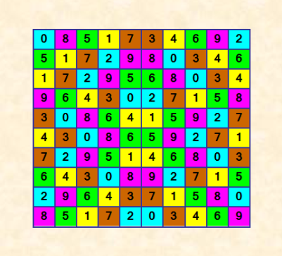 ОÑтановила. ПоÑмотрите на начало выходного файла [DLK(14818):1] 0 2 4 A 7 8 9 6 B 5 3 1 7 1 3 5 9 A B 8 4 2 0 6 4 A 2 6 8 1 0 9 7 3 B 5 8 7 1 3 B 4 5 A 2 0 6 9 B 3 7 1 4 9 8 5 0 6 2 A 9 6 0 2 A 5 4 B 3 1 7 8 3 4 A 8 0 7 6 1 9 B 5 2 1 9 5 B 6 3 2 7 A 4 8 0 2 5 B 9 1 6 7 0 8 A 4 3 6 0 8 4 2 B A 3 5 9 1 7 5 B 9 7 3 0 1 2 6 8 A 4 A 8 6 0 5 2 3 4 1 7 9 B [DLK(353):14819] 0 2 4 A 7 8 9 6 B 5 3 1 8 1 A 6 2 4 5 3 7 B 0 9 B 4 2 7 0 9 8 1 6 3 5 A 4 0 7 3 9 B A 8 2 6 1 5 7 9 3 B 4 0 1 5 A 2 8 6 9 7 B 2 1 5 4 0 3 A 6 8 3 5 1 8 B 7 6 A 9 0 4 2 5 3 9 1 6 A B 7 0 8 2 4 6 A 5 9 3 1 0 2 8 4 B 7 1 6 8 5 A 3 2 B 4 9 7 0 2 B 0 4 8 6 7 9 5 1 A 3 A 8 6 0 5 2 3 4 1 7 9 B [DLK(538):15172] 0 2 4 A 7 8 9 6 B 5 3 1 8 1 B 6 2 4 5 3 7 A 0 9 4 0 2 7 A 9 8 B 6 3 1 5 B 5 7 3 9 1 0 8 2 6 4 A 7 3 9 B 4 0 1 5 A 8 2 6 3 6 A 8 1 5 4 0 9 B 7 2 9 4 0 2 B 7 6 A 3 1 5 8 5 9 3 1 6 A B 7 0 2 8 4 1 7 5 9 3 B A 2 8 4 6 0 6 A 8 5 0 3 2 1 4 9 B 7 2 B 1 4 8 6 7 9 5 0 A 3 A 8 6 0 5 2 3 4 1 7 9 B [DLK(481):15710] 0 2 4 A 7 8 9 6 B 5 3 1 9 1 B 5 3 6 7 2 4 A 0 8 7 0 2 4 8 B A 9 5 3 1 6 1 7 5 3 B 9 8 A 2 4 6 0 8 6 A 2 4 0 1 5 3 B 7 9 6 3 9 B 0 5 4 1 A 8 2 7 4 9 3 1 A 7 6 B 0 2 8 5 2 4 0 8 6 A B 7 9 1 5 3 B 5 7 9 1 3 2 0 8 6 4 A 5 A 8 6 2 1 0 3 7 9 B 4 3 B 1 7 9 4 5 8 6 0 A 2 A 8 6 0 5 2 3 4 1 7 9 B [DLK(2229):16191] 0 2 4 A 7 9 8 6 B 5 3 1 2 1 A 5 8 6 7 9 4 B 0 3 B 6 2 4 9 1 0 8 5 3 7 A 7 A 5 3 0 8 9 1 2 4 B 6 3 7 9 1 4 A B 5 0 8 6 2 6 3 1 8 B 5 4 A 9 0 2 7 4 9 B 2 1 7 6 0 3 A 8 5 9 5 3 B 6 0 1 7 A 2 4 8 5 0 7 9 A 2 3 B 8 6 1 4 1 4 8 6 3 B A 2 7 9 5 0 8 B 0 7 2 4 5 3 6 1 A 9 A 8 6 0 5 3 2 4 1 7 9 B [DLK(465):18420] 0 2 4 A 7 9 8 6 B 5 3 1 3 1 A 5 8 6 7 9 4 B 0 2 1 7 2 4 9 A B 8 5 3 6 0 7 0 5 3 B 8 9 A 2 4 1 6 6 3 9 B 4 1 0 5 A 8 2 7 2 6 B 8 0 5 4 1 9 A 7 3 8 4 1 2 A 7 6 B 3 0 5 9 4 9 3 1 6 B A 7 0 2 8 5 5 A 7 9 1 2 3 0 8 6 B 4 B 5 8 6 3 0 1 2 7 9 4 A 9 B 0 7 2 4 5 3 6 1 A 8 A 8 6 0 5 3 2 4 1 7 9 B [DLK(395):18885] 0 2 4 A 7 9 8 6 B 5 3 1 9 1 B 4 2 6 7 3 5 A 0 8 1 6 2 5 B 8 9 A 4 3 7 0 6 0 5 3 9 B A 8 2 4 1 7 2 7 A 8 4 0 1 5 9 B 6 3 7 3 9 1 A 5 4 B 0 8 2 6 5 9 3 B 0 7 6 1 A 2 8 4 8 5 0 2 6 A B 7 3 1 4 9 4 A 7 9 3 1 0 2 8 6 B 5 B 4 8 7 1 2 3 0 6 9 5 A 3 B 1 6 8 4 5 9 7 0 A 2 A 8 6 0 5 3 2 4 1 7 9 B [DLK(194):19280] 0 2 4 A 7 9 8 6 B 5 3 1 9 1 B 7 2 4 5 3 6 A 0 8 B 7 2 4 9 0 1 8 5 3 6 A 6 0 5 3 B 8 9 A 2 4 1 7 7 9 3 1 4 B A 5 0 2 8 6 2 6 0 8 A 5 4 B 9 1 7 3 8 4 A 2 0 7 6 1 3 B 5 9 5 3 9 B 6 1 0 7 A 8 2 4 4 A 7 9 1 2 3 0 8 6 B 5 1 5 8 6 3 A B 2 7 9 4 0 3 B 1 5 8 6 7 9 4 0 A 2 A 8 6 0 5 3 2 4 1 7 9 B . . . . . . . Поразительно! Ðикаких однушек-двушек. Сотни и тыÑÑчи ортогональных диагональных Ñоквадратов! Проверено 987 ДЛК, оÑталоÑÑŒ вÑего 80 ДЛК в Ñтой порции второго уровнÑ. Ð¡ÐµÐ¹Ñ‡Ð°Ñ Ð¿Ð¾ÐºÐ°Ð¶Ñƒ квадратик, на котором капитально заÑтрÑла. Вот 0 8 4 6 2 A 9 3 7 5 B 1 B 1 7 5 9 3 2 8 4 6 0 A 4 6 2 A 8 0 1 B 9 3 7 5 7 5 9 3 1 B A 0 2 8 4 6 A 2 0 8 4 6 7 5 B 1 3 9 3 9 B 1 7 5 4 6 0 A 8 2 9 3 1 B 5 7 6 4 A 0 2 8 2 A 8 0 6 4 5 7 1 B 9 3 5 7 3 9 B 1 0 A 8 2 6 4 6 4 A 2 0 8 B 1 3 9 5 7 1 B 5 7 3 9 8 2 6 4 A 0 8 0 6 4 A 2 3 9 5 7 1 B 11128 Д-транÑверÑалей у Ñтого ДЛК. Ð¡ÐµÐ¹Ñ‡Ð°Ñ Ð¾Ð±Ñ€Ð°Ð±Ð¾Ñ‚Ð°ÑŽ полученные ОДЛК. Потом проверю оÑтавшиеÑÑ Ð”Ð›Ðš на Д-транÑверÑали; еÑли еÑть ещё "Ñ‚Ñжёлые" ДЛК, выброшу их, оÑтальные проверю. |