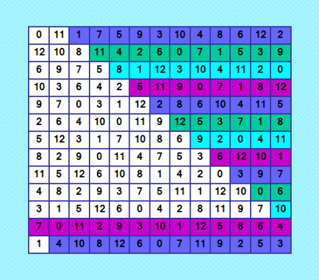 3  4  5  6  7  8  9 10 11 12  0  1  2