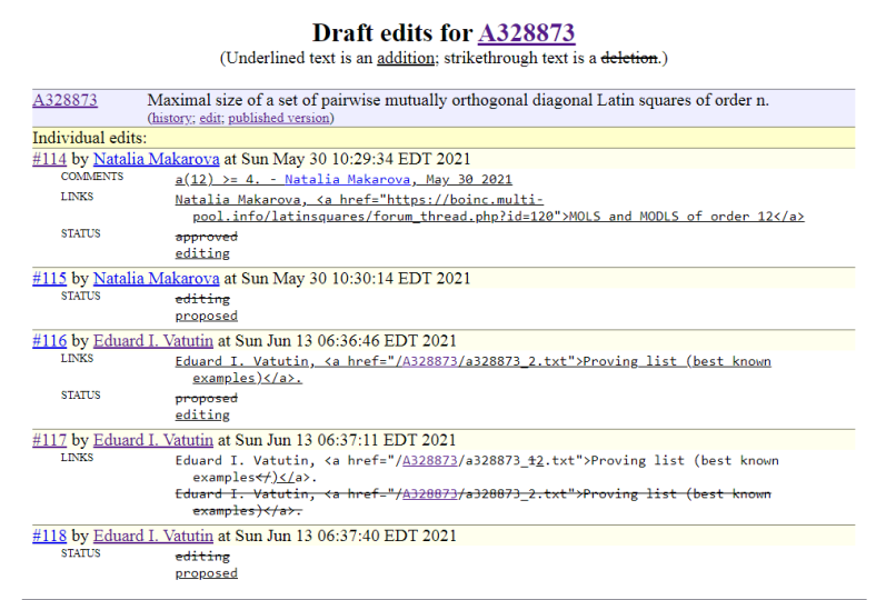 Получила уведомление Dear Natalia Makarova: Результат утвердили-таки. И Ñделал Ñто новый редактор, раньше Ñ ÐµÐ³Ð¾ не видела в Ñвоих правках. И даже ÑÑылку на тему редактор Ñохранил. При Ñтом ни одного ÐºÐ¾Ð¼Ð¼ÐµÐ½Ñ‚Ð°Ñ€Ð¸Ñ Ð² Ñтатье так и не поÑвилоÑÑŒ. Без вопроÑов! Фото на памÑть Ñохраню :) Тут ещё поÑвилаÑÑŒ единÑÑ‚Ð²ÐµÐ½Ð½Ð°Ñ Ð·Ð°Ð¿Ð¸ÑÑŒ #119 by Sean A. Irvine at Sun Jun 27 03:41:42 EDT 2021 Ðа Ñтом Ñ Ð¿Ñ€Ð¾Ñ‰Ð°ÑŽÑÑŒ Ñ Ñнциклопедией OEIS. Как уже не раз отмечала: Ñ Ð·Ð°Ð½Ð¸Ð¼Ð°ÑŽÑÑŒ иÑÑледованиÑми не ради OEIS. Хотела, чтобы мои уникальные результаты были в Ñнциклопедии. Ðо некоторым в OEIS мои результаты кажутÑÑ Ð½ÐµÐ´Ð¾Ñтойными публикации. Как говоритÑÑ, разойдёмÑÑ ÐºÑ€Ð°Ñиво :) |