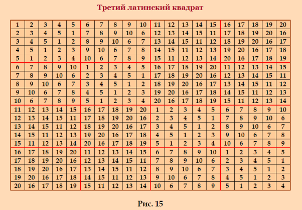 Покажу группу MOLS 20-го порÑдка, поÑтроенную в указанной выше Ñтатье Первые два ЛК ÑвлÑÑŽÑ‚ÑÑ Ð”Ð›Ðš. Ð’Ñе три ЛК поÑтроены методом ÑоÑтавных квадратов. ЛК предÑтавлены в нетрадиционной форме. Ð”Ð»Ñ Ð¿Ñ€ÐµÐ²Ñ€Ð°Ñ‰ÐµÐ½Ð¸Ñ Ð² традиционную форму надо вÑе Ñлементы уменьшить на 1. Обратите внимание на третий ЛК; он ÑконÑтруирован не так, как Ñ ÑконÑтруировала в наÑтоÑщее времÑ. Вчера открывала тему на форуме Math Help Planet, обратила на Ñто внимание, когда пиÑала 20 данных Ñтрок (Ð´Ð»Ñ Ð³Ñ€ÑƒÐ¿Ð¿Ñ‹ MOLS, поÑтроенной в данный момент) 0 1 2 3 4 5 6 7 8 9 10 11 12 13 14 15 16 17 18 19 1 2 3 4 0 6 7 8 9 5 11 12 13 14 10 16 17 18 19 15 2 3 4 0 1 7 8 9 5 6 12 13 14 10 11 17 18 19 15 16 3 4 0 1 2 8 9 5 6 7 13 14 10 11 12 18 19 15 16 17 4 0 1 2 3 9 5 6 7 8 14 10 11 12 13 19 15 16 17 18 5 6 7 8 9 0 1 2 3 4 15 16 17 18 19 10 11 12 13 14 6 7 8 9 5 1 2 3 4 0 16 17 18 19 15 11 12 13 14 10 7 8 9 5 6 2 3 4 0 1 17 18 19 15 16 12 13 14 10 11 8 9 5 6 7 3 4 0 1 2 18 19 15 16 17 13 14 10 11 12 9 5 6 7 8 4 0 1 2 3 19 15 16 17 18 14 10 11 12 13 10 11 12 13 14 15 16 17 18 19 0 1 2 3 4 5 6 7 8 9 11 12 13 14 10 16 17 18 19 15 1 2 3 4 0 6 7 8 9 5 12 13 14 10 11 17 18 19 15 16 2 3 4 0 1 7 8 9 5 6 13 14 10 11 12 18 19 15 16 17 3 4 0 1 2 8 9 5 6 7 14 10 11 12 13 19 15 16 17 18 4 0 1 2 3 9 5 6 7 8 15 16 17 18 19 10 11 12 13 14 5 6 7 8 9 0 1 2 3 4 16 17 18 19 15 11 12 13 14 10 6 7 8 9 5 1 2 3 4 0 17 18 19 15 16 12 13 14 10 11 7 8 9 5 6 2 3 4 0 1 18 19 15 16 17 13 14 10 11 12 8 9 5 6 7 3 4 0 1 2 19 15 16 17 18 14 10 11 12 13 9 5 6 7 8 4 0 1 2 3 Здорово! ПроÑто Ñтроки запиÑаны в порÑдке возраÑÑ‚Ð°Ð½Ð¸Ñ Ð¿ÐµÑ€Ð²Ð¾Ð³Ð¾ Ñлемента. И ЛК готов! Ещё отмечу, что в показанной группе MOLS квадраты не получаютÑÑ Ð´Ñ€ÑƒÐ³ из друга переÑтановкой Ñтрок. Ð’ Ñтом ÑмыÑле поÑÑ‚Ñ€Ð¾ÐµÐ½Ð½Ð°Ñ Ð¼Ð½Ð¾Ð¹ в наÑтоÑщее Ð²Ñ€ÐµÐ¼Ñ Ð³Ñ€ÑƒÐ¿Ð¿Ð° MOLS интереÑнее. |