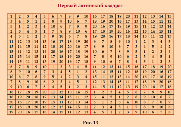 Ртеперь - идеÑ! Возьмём два ДЛК из извеÑтной группы MOLS 24-го порÑдка, нормализуем их и точно так же переÑтавим Ñтроки, как Ñ Ð¿ÐµÑ€ÐµÑтавила в показанном ЛК. Что мы должны получить? Мы должны получить группу MOLS, ÑоÑтоÑщую из двух ДЛК и одного ЛК. Ðо! Квадраты Ñтой группы MOLS не получаютÑÑ Ð´Ñ€ÑƒÐ³ из друга переÑтановкой Ñтрок. Ð¡ÐµÐ¹Ñ‡Ð°Ñ Ñ Ð¿Ñ€Ð¾Ð´ÐµÐ»Ð°ÑŽ Ñто и покажу полученную группу MOLS. |